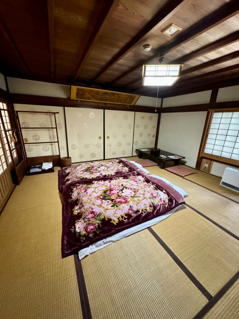 The morning ceremony began at 6:30 am. Unlike my partner, I am not a morning person. The tatami floor, for all its cultural appeal, is harder than it sounds, and the idea of getting up before dawn was not appealing. My partner convinced me. The cold helped – it was too cold to sleep comfortably anyway, and lying awake alone in the room until breakfast felt worse than getting up.
