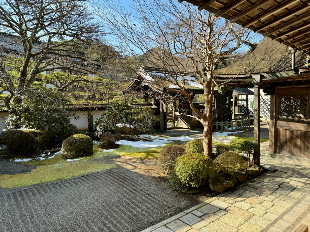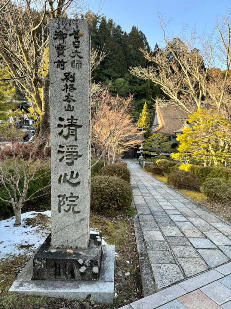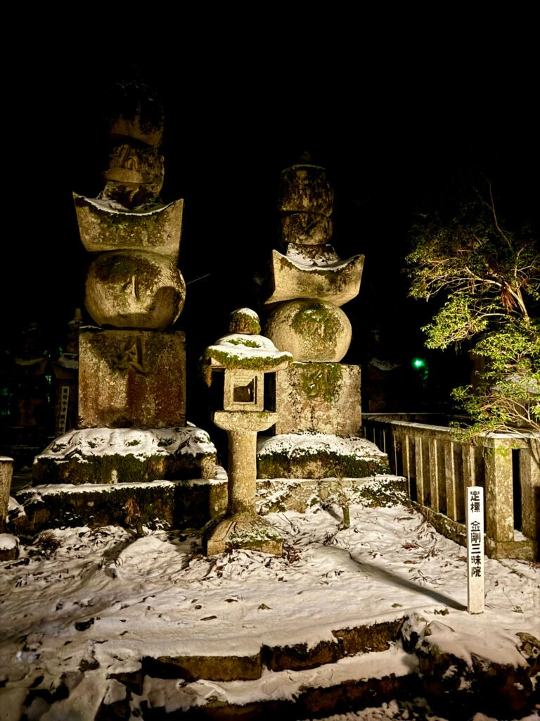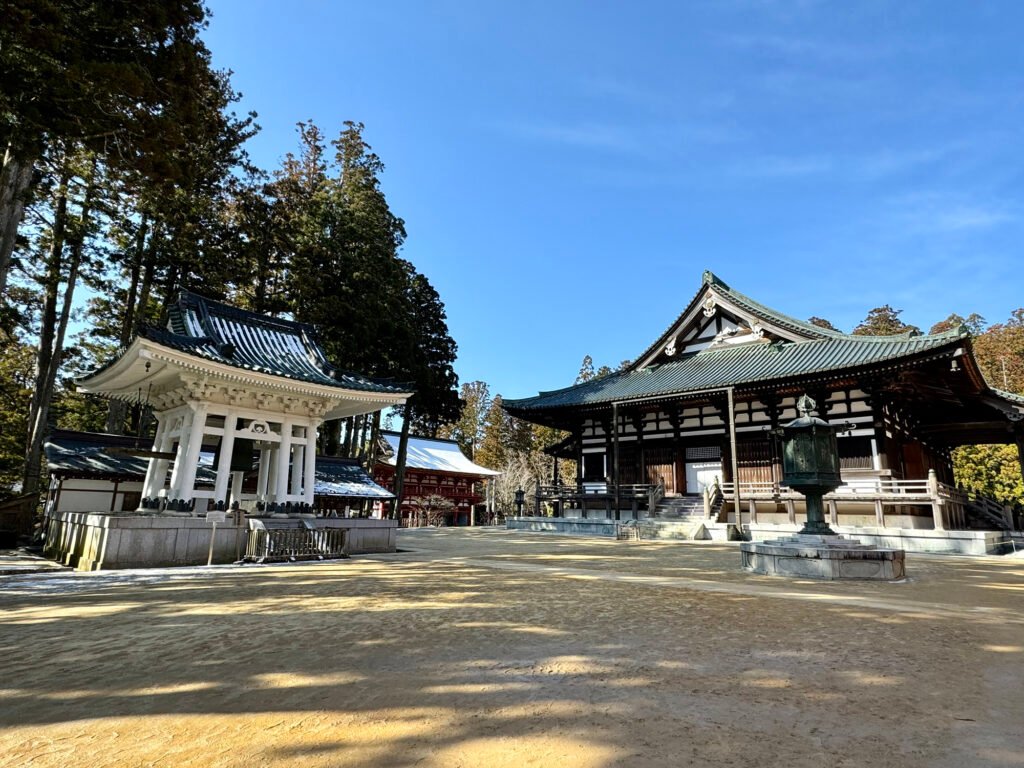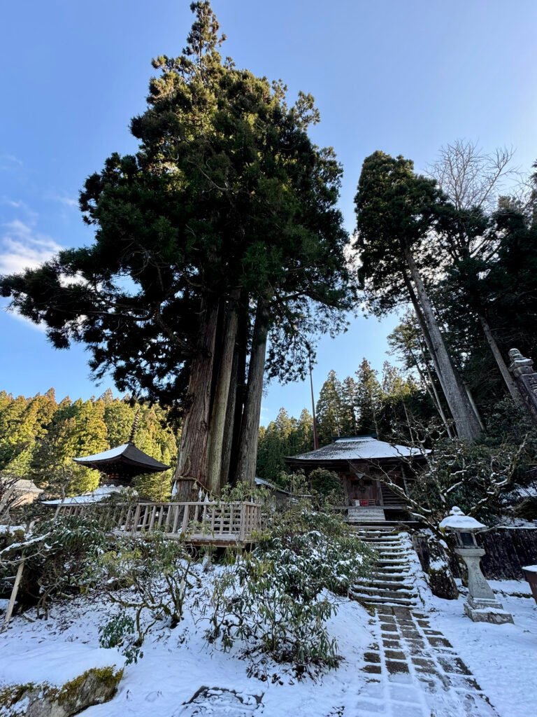Koyasan had seen a dusting just before our arrival, and while much of it had melted by the time we checked in, Kongosanmai-in (金剛三昧院) – one of the first temples we visited that afternoon – was still draped in white. There was real snow on the ground between the stone lanterns, dusting the curved temple rooftops, and clinging to the lower branches of the giant, ancient cedars.