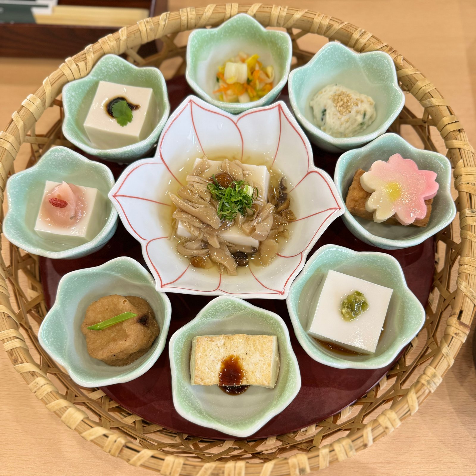 Lunch was at Gomadofu Sōhonpo (ごまとうふ総本舗), a specialist in Koyasan’s most famous delicacy. We ordered the goma dofu, which arrived beautifully plated – a small, pale square of art on a ceramic dish. Made from sesame and arrowroot rather than soy, it was creamy, nutty, and confirmed everything we’d suspected: food this carefully prepared belongs in a category of its own.